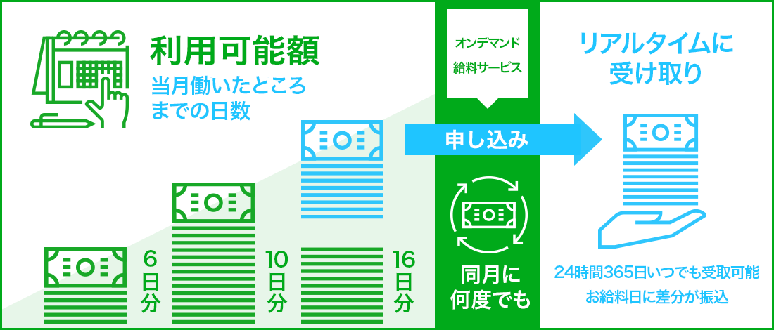 ※モアタイムに対応していない金融機関を給与受取口座に指定している場合は、銀行営業時間内のみの受取となりますので、予めご了承ください。